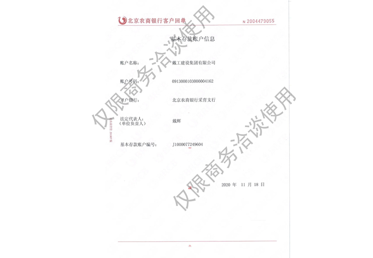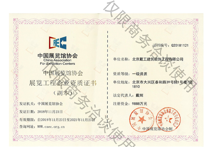 戴工建設(shè)集團(tuán)有限公司,創(chuàng)建于2009年,注冊資本9888萬元人民幣。公司位于北京市大興區(qū)。具有建委頒發(fā)的建筑裝飾裝修專業(yè)壹級,防水保溫工程專業(yè)壹級,建筑幕墻專業(yè)貳級,消防設(shè)施專業(yè)貳級,電子與智能化專業(yè)貳級,特種工程(結(jié)構(gòu)補(bǔ)強(qiáng))專業(yè)不分等級,建筑機(jī)電安裝專業(yè)貳級,環(huán)保工程專業(yè)貳級,鋼結(jié)構(gòu)專業(yè)貳級,建筑工程總承包貳級,建筑裝飾工程設(shè)計專項甲級,展覽陳列工程設(shè)計與施工壹級,展覽展示工程壹級...更多>>